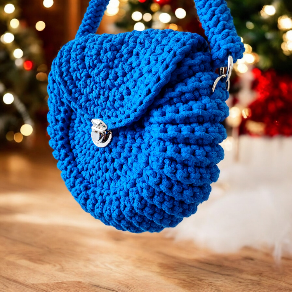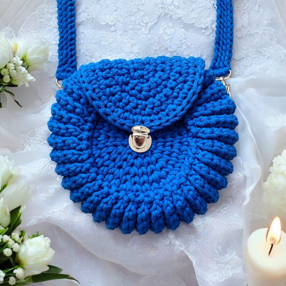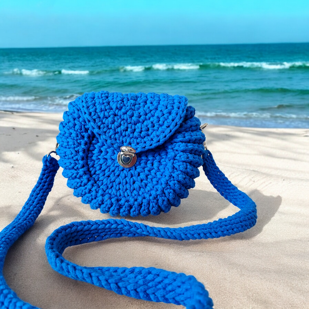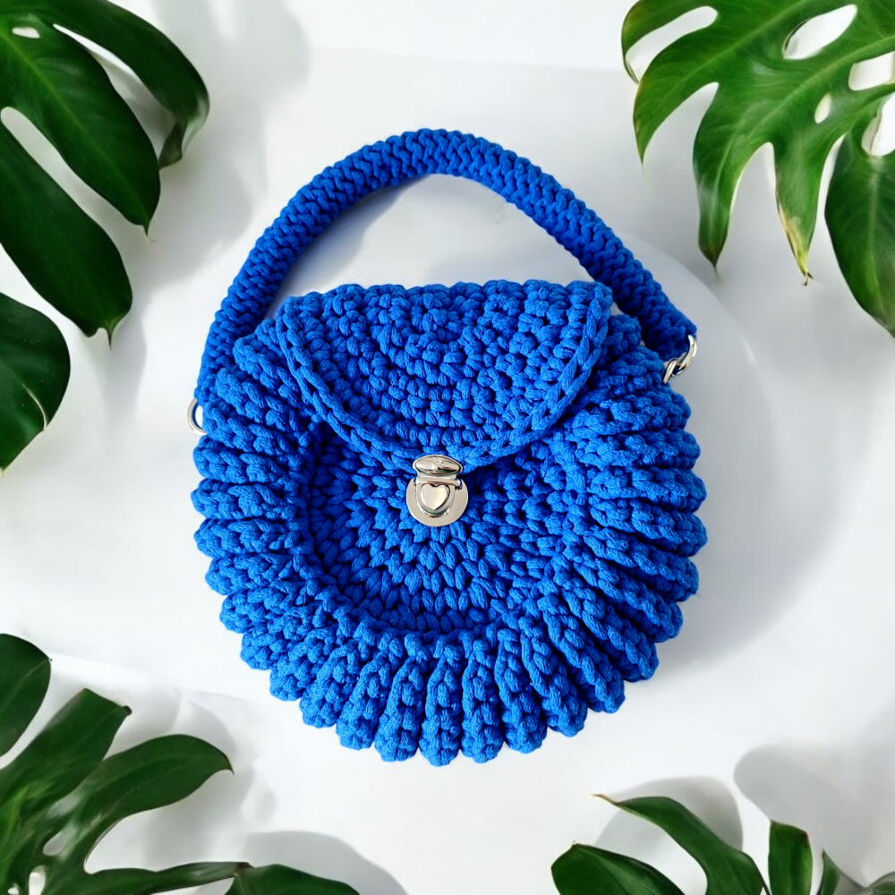 Chabrowa torebka “Oreo” to propozycja dla kobiet, które cenią sobie oryginalny styl i praktyczne rozwiązania. Wykonana ręcznie z naturalnego bawełnianego sznurka, łączy w sobie solidność i unikatowy design. Jej okrągły kształt przypomina ciasteczko, co sprawia, że jest nie tylko funkcjonalnym dodatkiem, ale także stylowym akcentem, który przyciąga spojrzenia. Wyjątkowy chabrowy odcień niebieskiego nadaje jej świeżości i klasy, doskonale uzupełniając zarówno codzienne, jak i bardziej eleganckie stylizacje.