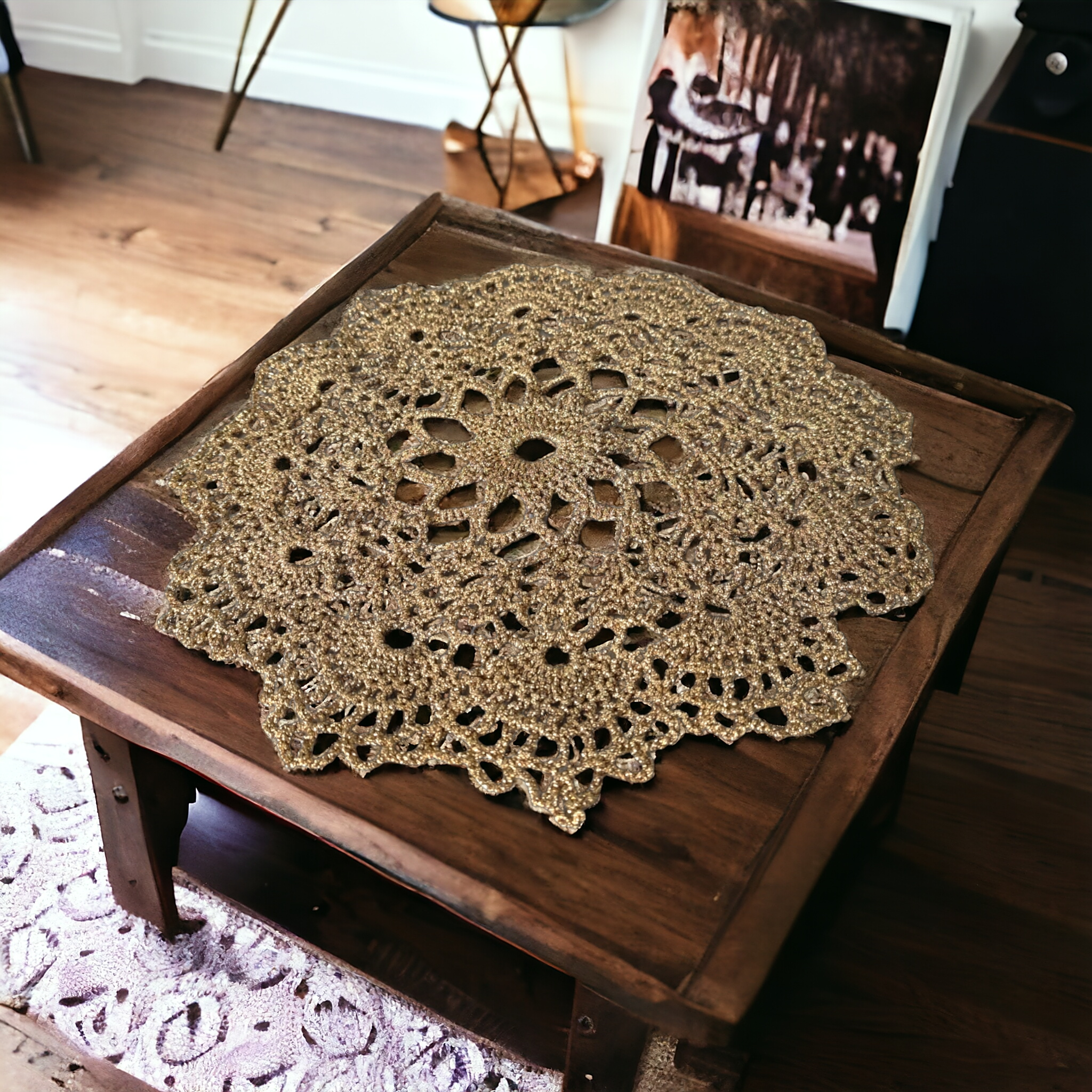Serwetka okrągła złota mała to zakup, dzięki któremu wspierasz polską artystkę!