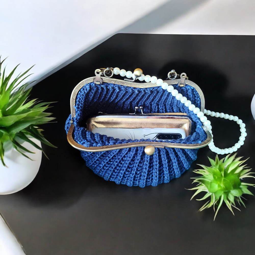 Torebka retro z klamrą granatowa